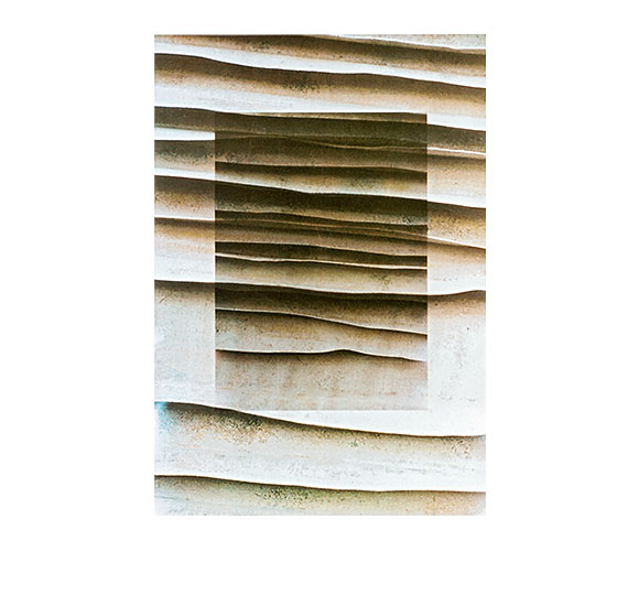 Zeit-Fenster: Fenster aus der Zeit. Ein zeitliches und sinnliches Sich-Einlassen des Betrachters: Der Blick geht über Reihen und Stufen, Sequenzen, Sukzessionen. Ein Rhythmus mit Irregularitäten und Interferenzen, wo eine Struktur sich über die andere legt … «